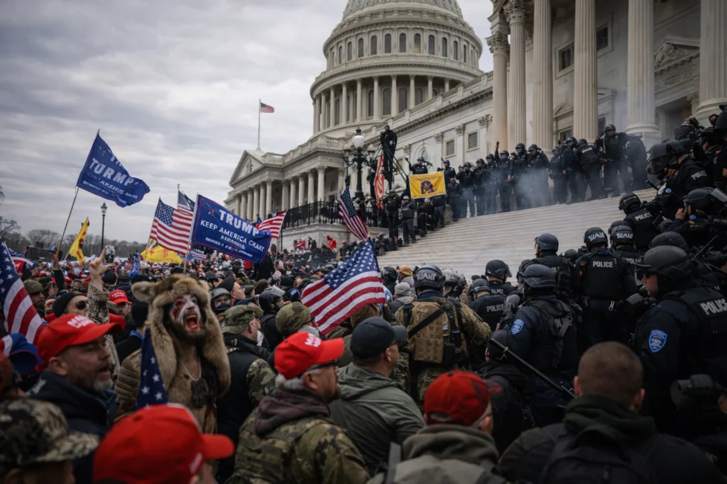 A quarta-feira 6 de janeiro de 2021 ficará marcada como o dia em que a democracia na América foi tomada de assalto por radicais de direita, anti-democráticos, todos brancos e fortemente armados, com a conivência das forças de segurança que deveriam preservar a integridade do Capitólio em Washington, D.C.